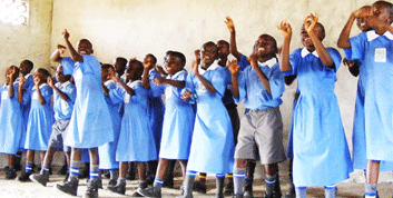 We perform plays, songs and distribute literature during performances to educate the audiences on the far-reaching effects AIDS has had on them, their family structure and the community. Educating and informing the public of the effects of HIV and AIDS are the keys to combating the challenges facing many communities disproportionately affected by this disease. The children singing.